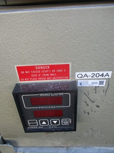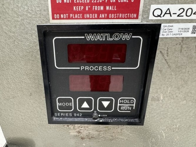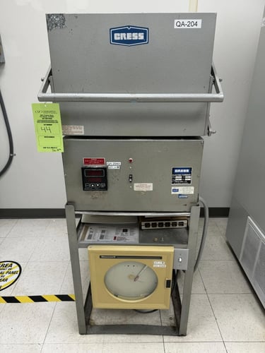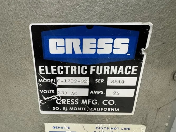 The CRESS MODEL C-1232-920 FURNACE is a high-quality lab furnace designed for heating and testing purposes. With a maximum temperature of 2200 degrees F and a 12" x 29" x 8" chamber size, this furnace is perfect for a variety of industrial and laboratory applications.