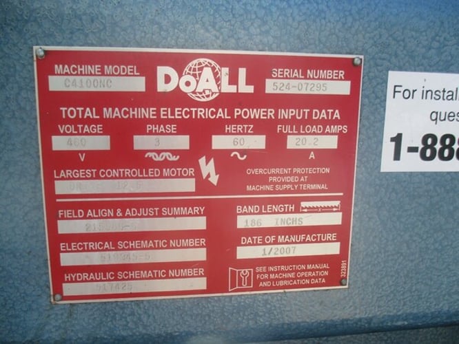 14" x 16" DoAll #C-4100NC, prog semi-auto band saw, 105-275 FPM, 1.5" x 186" blade, 2007