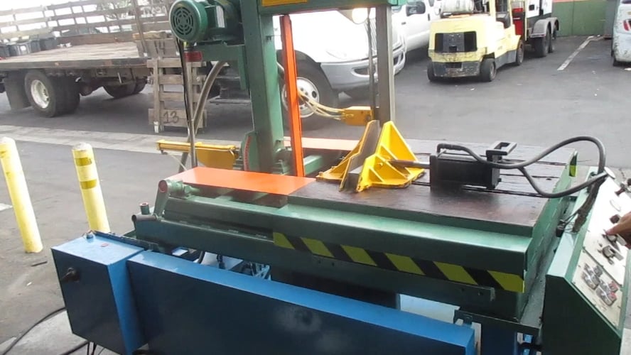14" x 21" DoAll #TF-1421, vertical tilting head bandsaw, 1" x 172" blade, 75-400 FPM, 38" passline, hydraulic vise, 1987