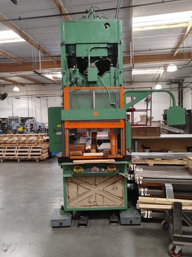 10" STROKE. PRESSING 50 IPM. PALM BUTTONS, FOOT PEDAL. 24" X 34" RAM. SPEEDS, ADVANCE 460 IPM.