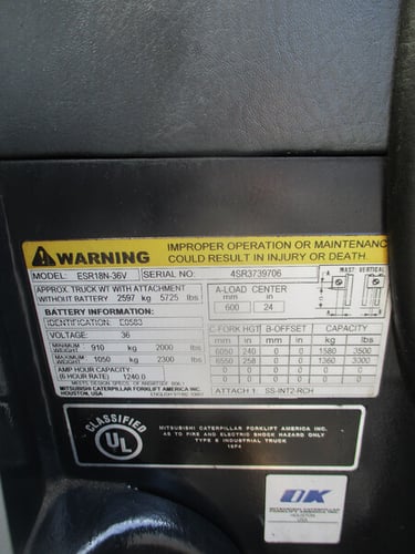 MITSUBISHI ESR18N-24V NARROW AISLE FORKLIFT NEEDS BATTERY?