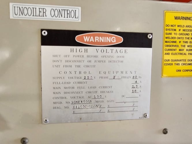 6700 lb. Orii #MEW06HABA, dual motorized uncoiler, 20" width, 1996