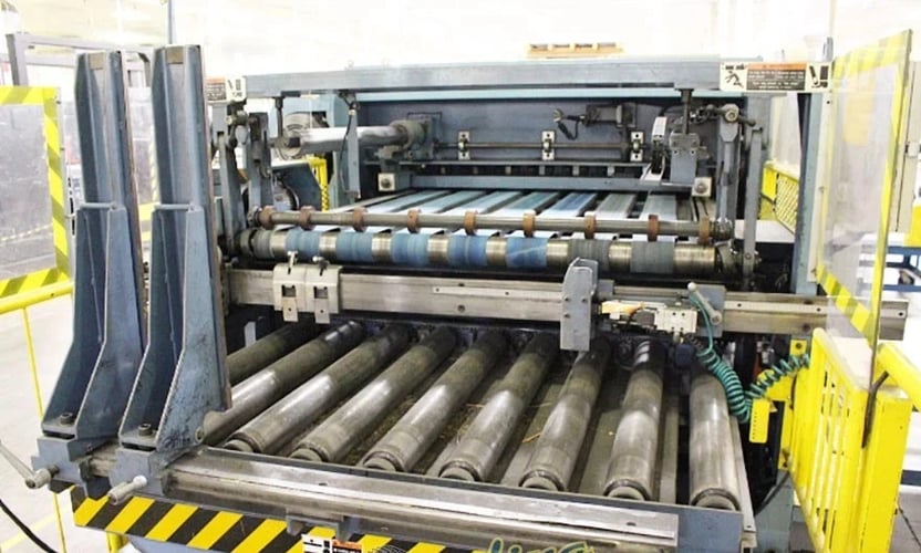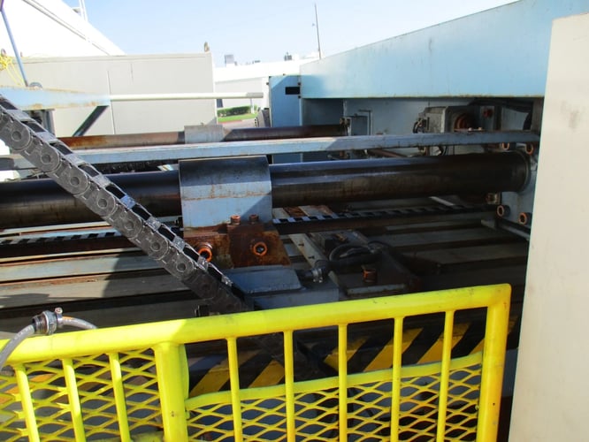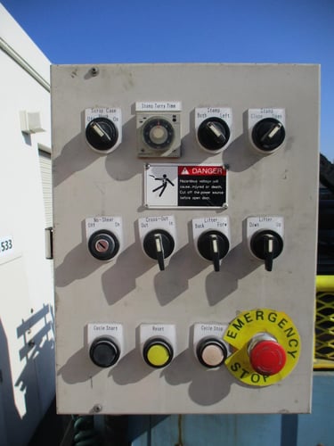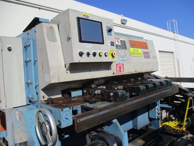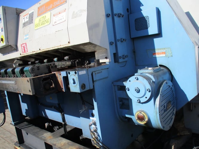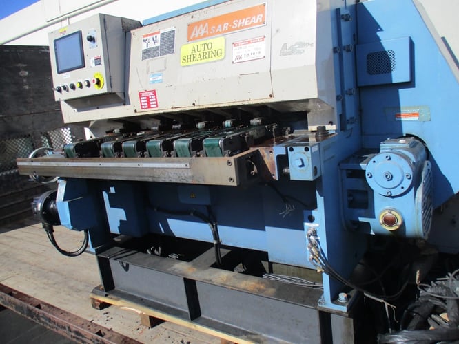 1/8" x 49" Used Aizawa Automatic Shear Cutting Line and Piling System (Great for Small Pieces), Mdl., Auto Cycle Mode, High Speed NC Backgauge, Less Scratch Piling, Magnetic Feeder, Motorized Roller on Material Lifter, Single Material Lifter, Motorized Cross Out Roller for Piling lifter, Scrap Box, Right Angle Positioner, Ejector, Run-Out Conveyor, Stamping SOLD AS IS NO WARRANTY.