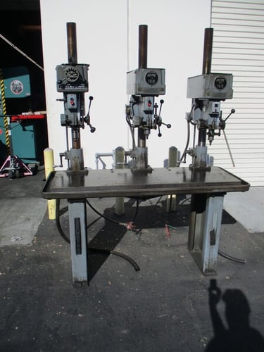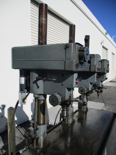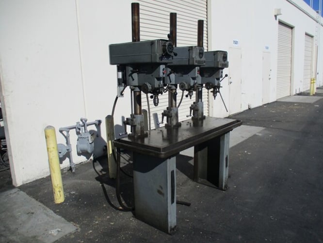 The Clausing 3 Spindle Gang Drill is a high-quality drill press stand designed for metalworking applications. With a swing of 16.00 inches and the ability to operate on 208/240/460 volts, this United States-made machine is durable and efficient. This floor-standing drill press is perfect for businesses in the industrial and manufacturing sectors, offering precision drilling and tapping capabilities for various metalworking tasks. Its sturdy construction and reliable performance make it a valuable tool for professionals in the CNC and metalworking industry.