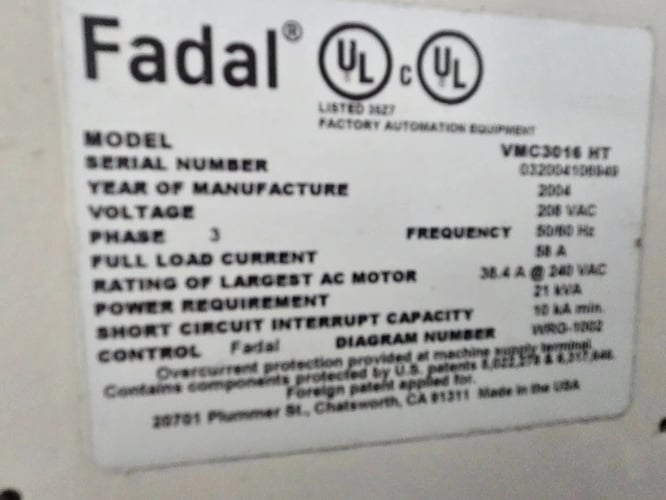 The NICE Fadal VMC 3016HT is a Machining Center specifically designed for milling tasks. Make: Fadal. Model: VMC 3016HT. Tool Capacity: 21 Station. Year: 2004. Equipped with.