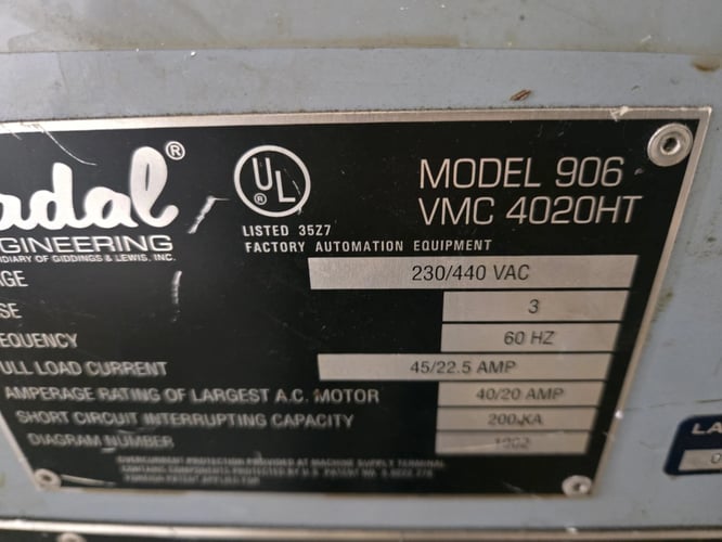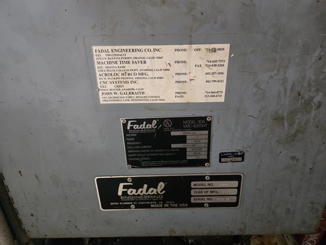 Fadal #VMC-4020HT, CNC Vertical Machining Center, 48" x 20" table, 40" X, 20" Y, 20" Z, 15 HP, 10,000 RPM, CAT 40, Fadal CNC 88HS, 230/440 VAC, 1997