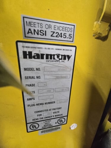 The HARMONY M60MD Baler GPI Cardboard Box Vertical Compactor is a reliable and efficient material handling solution designed for industrial use. With its low 8' clearance, this compact baler is ideal for managing cardboard boxes with ease. The brand Harmony is known for producing high-quality equipment, and the M60MD model is no exception. This vertical compactor is a valuable addition to any business or industrial setting looking to streamline material handling processes.