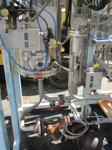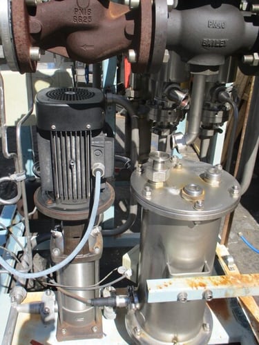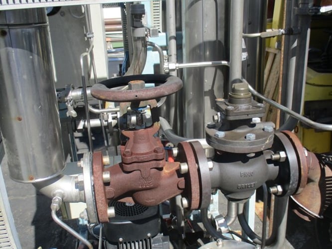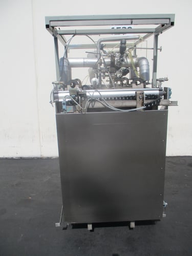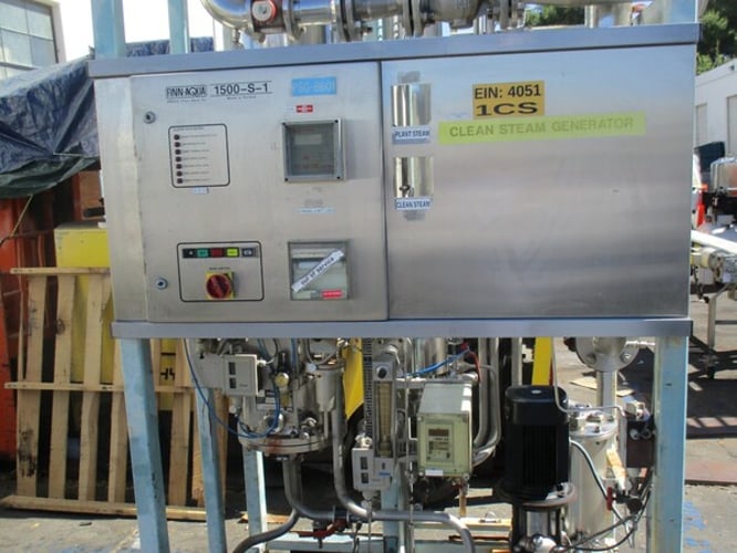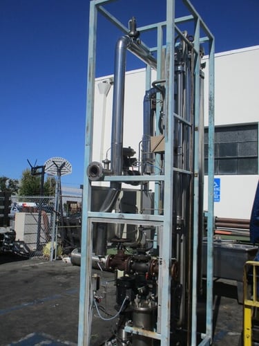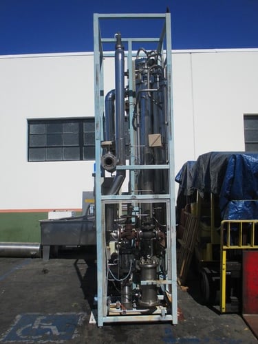 Upon reaching the bottom of the column, the evaporated part of the feed water continues vertically up the riser space of the column and around spiral shaped guides. These spiral guides induce a centrifugal action of the steam to remove any remaining microscopic droplets that contain impurities and/or pyrogenic material.