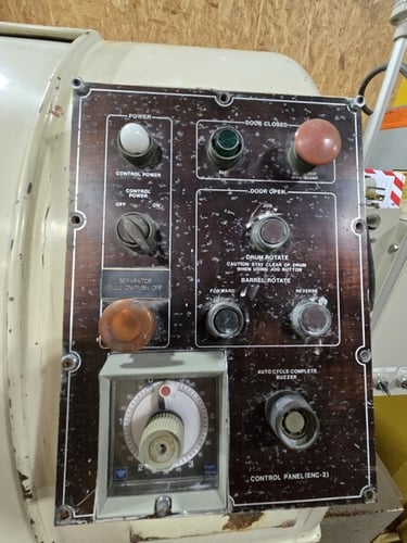 Timesavers HZ-120 Centrifugal 3 Barrel Finishing Machine 4 Cu. Ft Capacity. Condition is Used. Shipped with Freight .